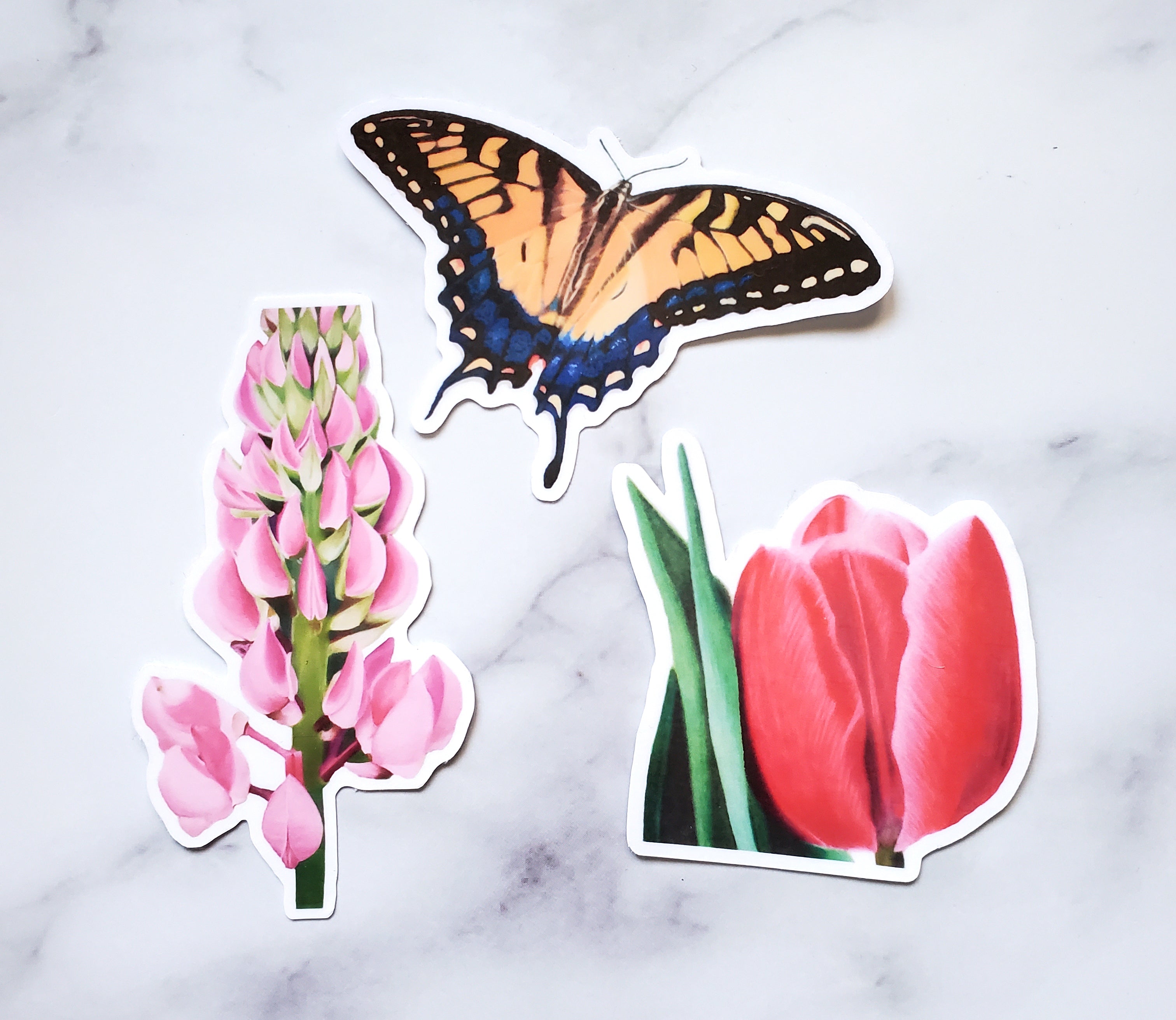 Pastel drawings, prints, cards, stickers, and mugs featuring my flower and butterfly...