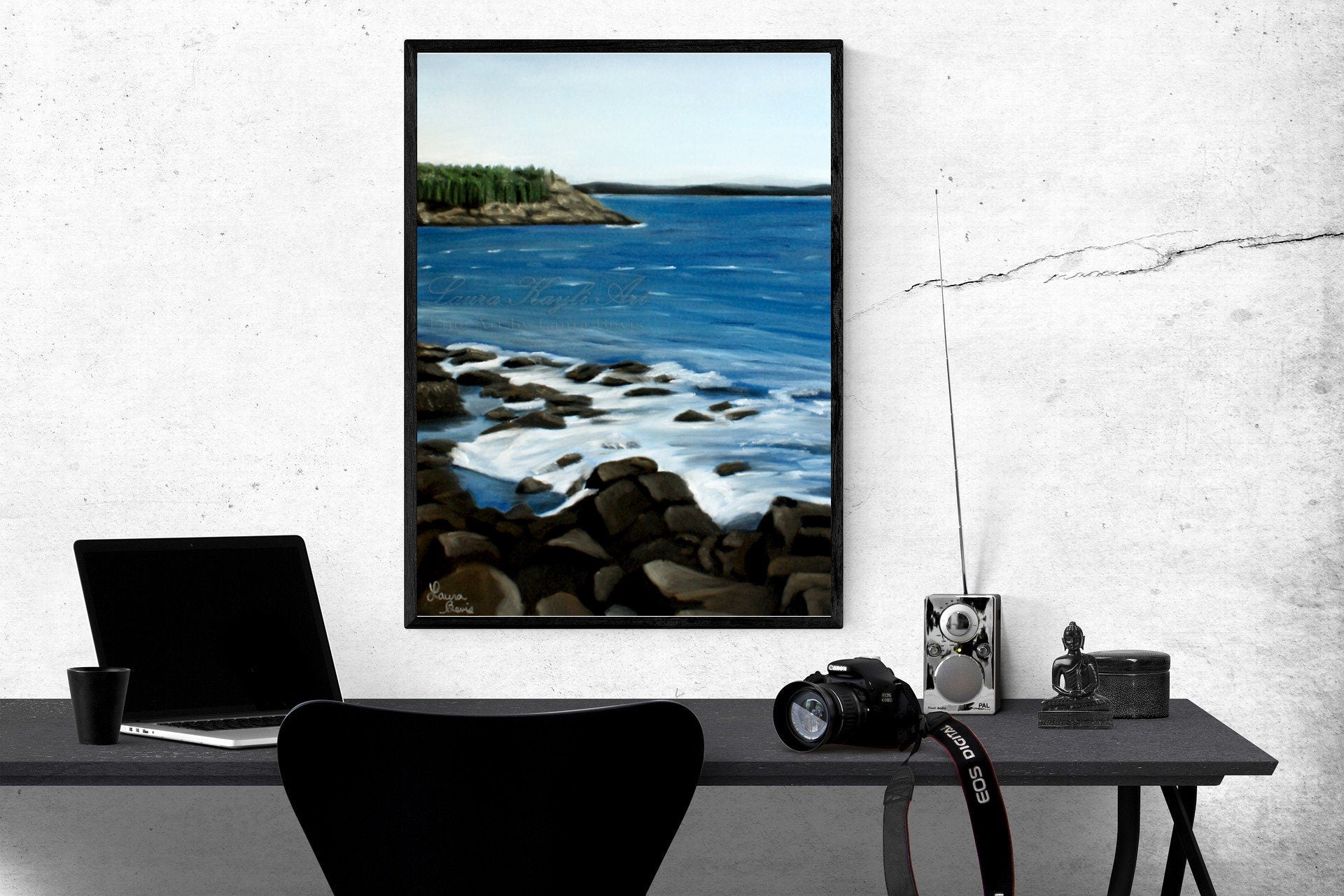 This seascape painting artist print is the perfect addition to your wall décor. This seascape will transport you to Acadia National Park in Maine. You can almost hear the waves and smell the sea just by looking at it!
