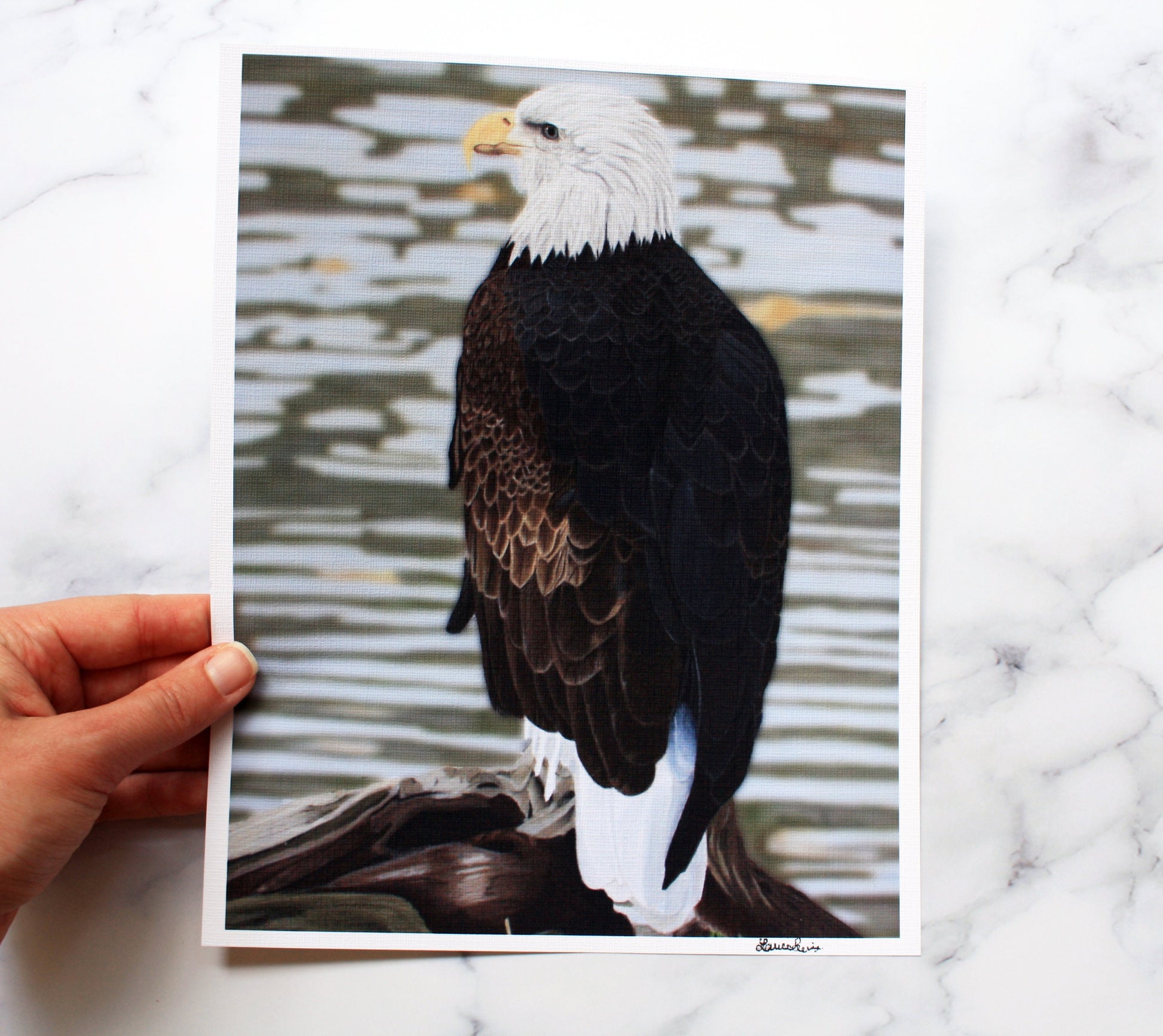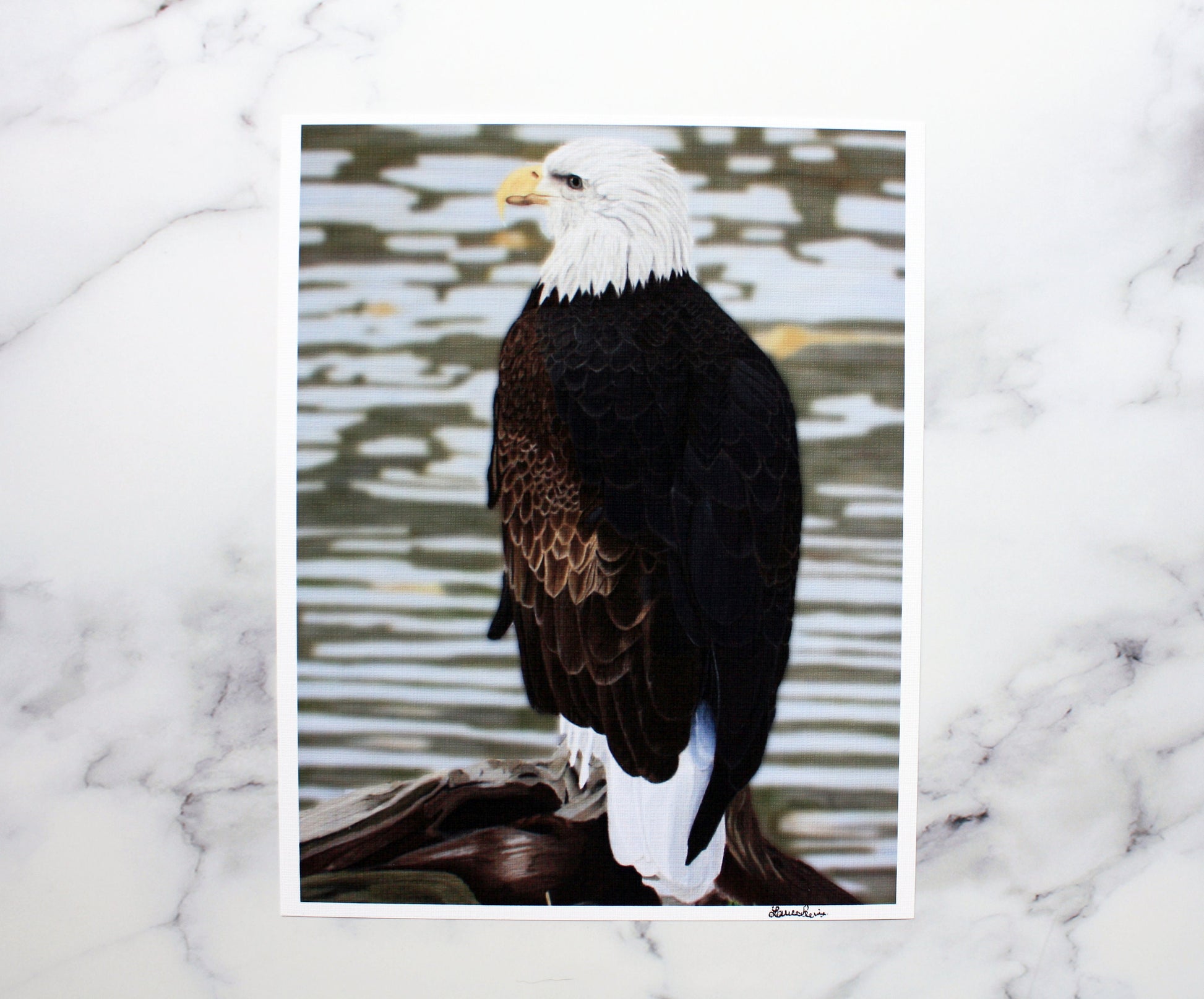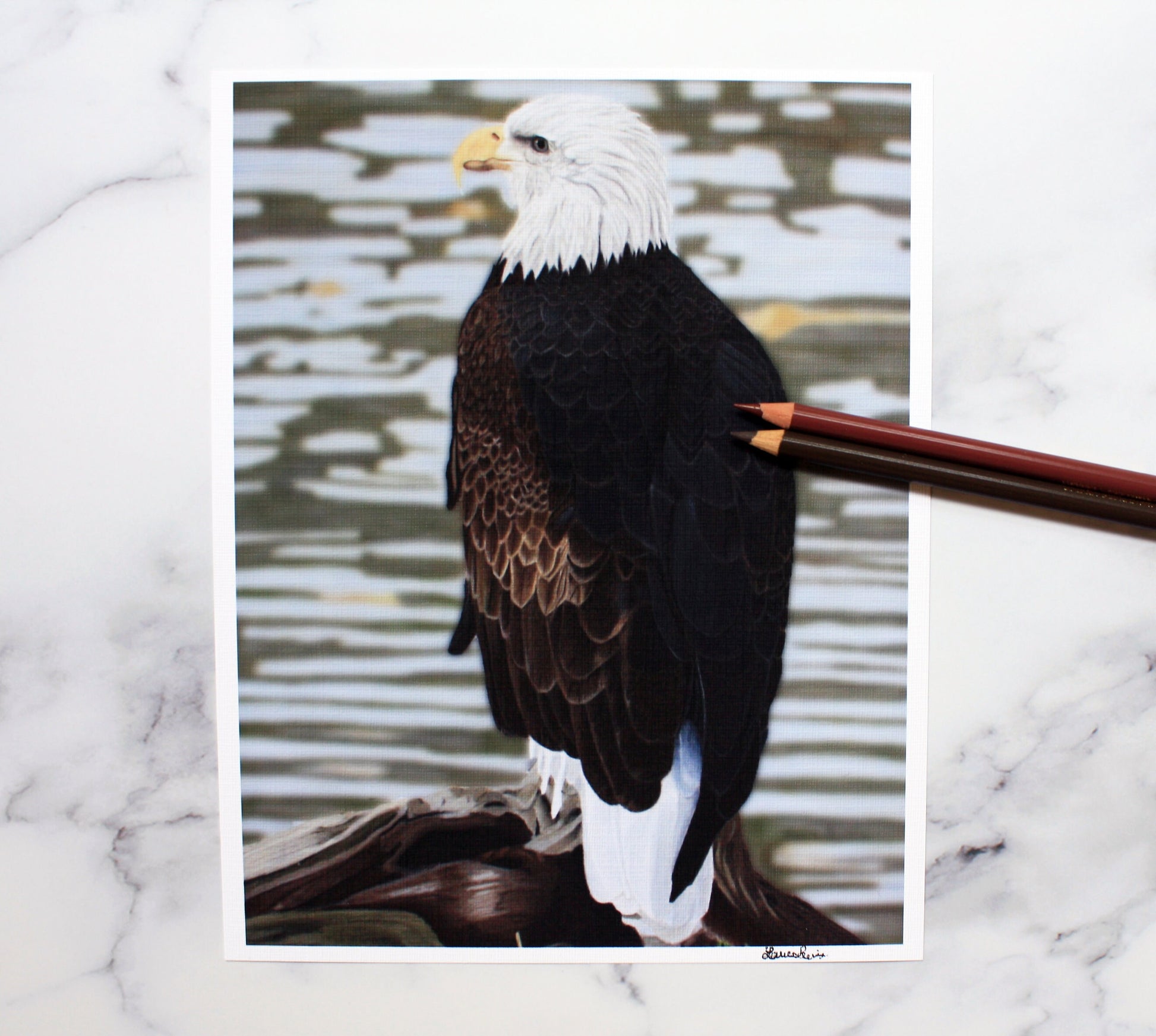 Prints are handmade and printed in my studio featuring my original colored pencil “Majestic Beauty” Bald Eagle drawing.