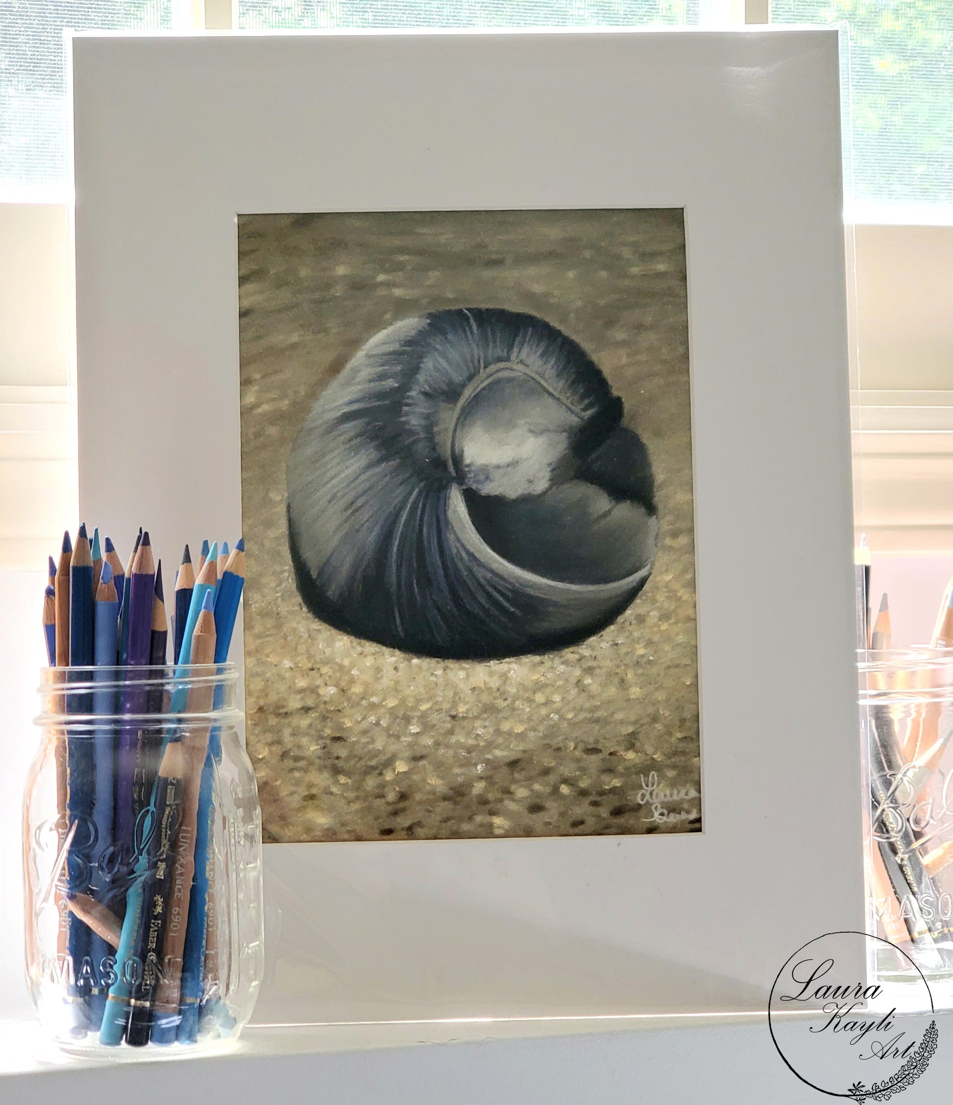 This cute little shell was all by itself right under the waves. I tried to capture the glitter from the sun in this little painting.