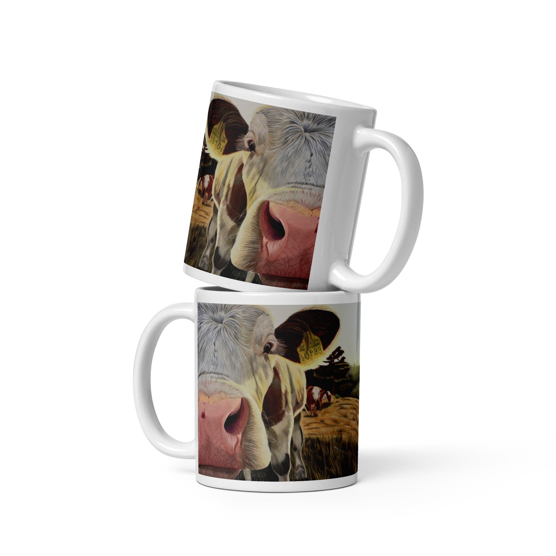 "Just Saying Hi" Cow White glossy mug