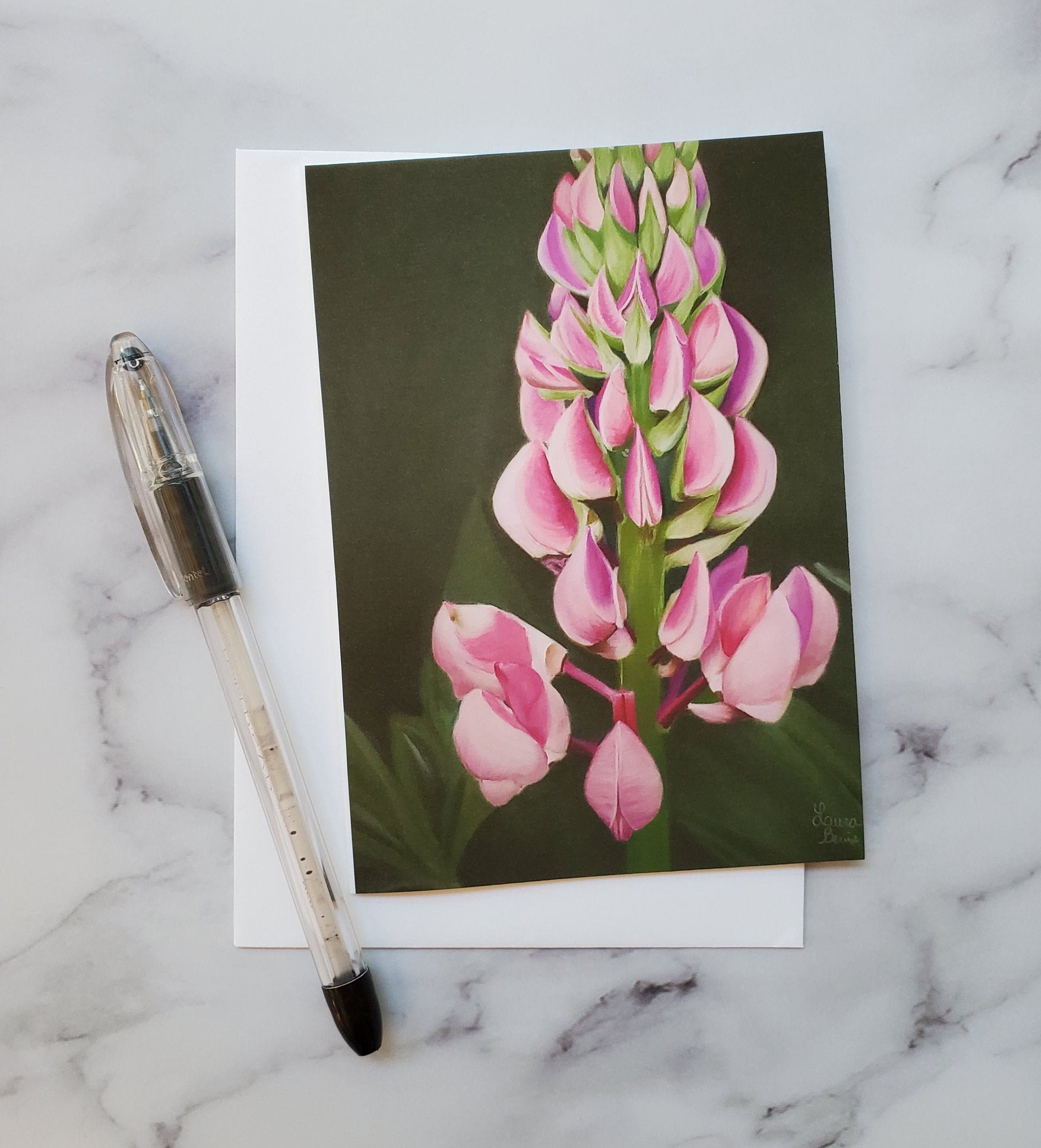 Handmade greeting card, printed and trimmed in my studio featuring my original pastel lupine drawing. This card is perfect for any occasion, whether it is for a celebration, sympathy, or just saying hi.