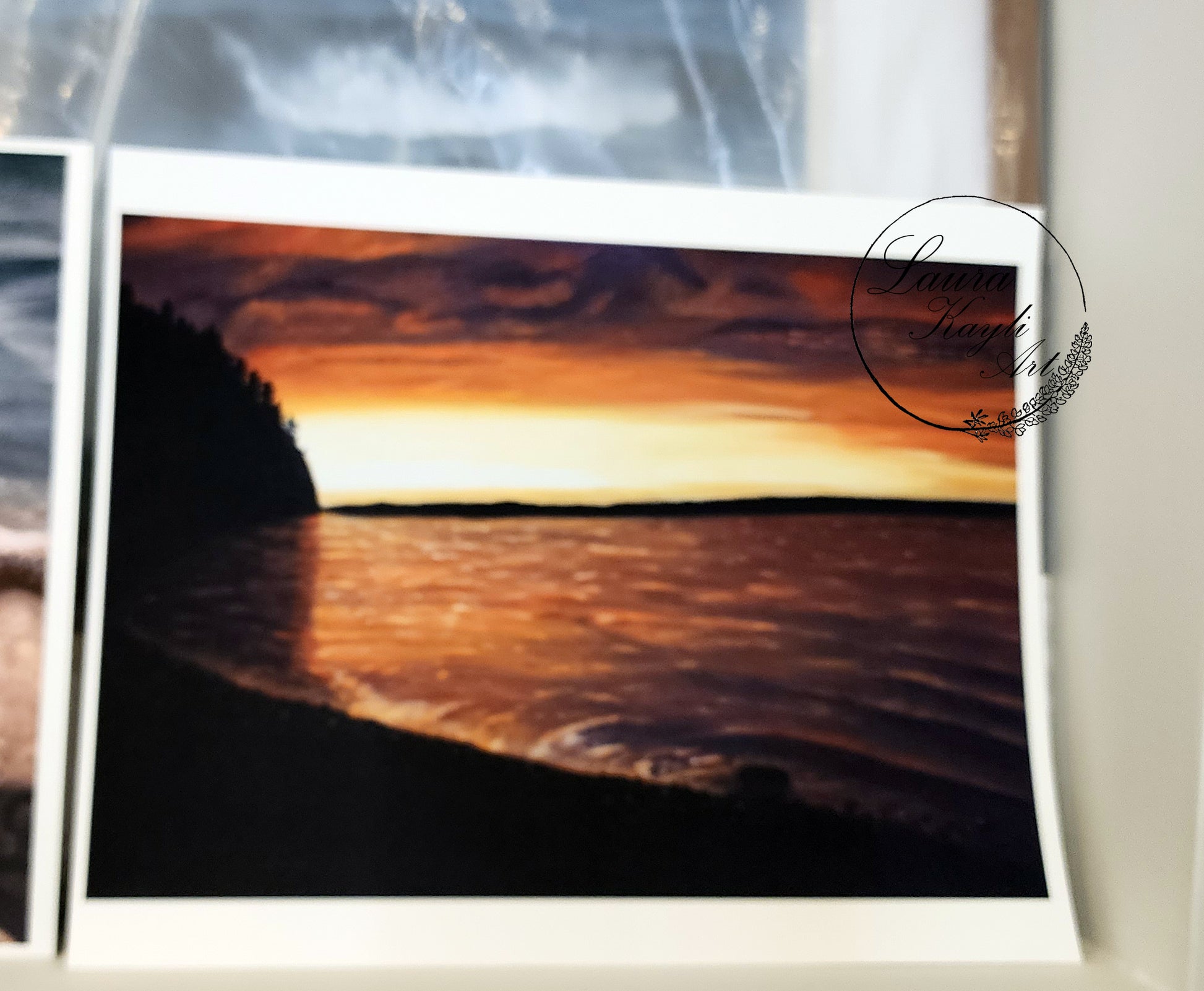 This 8x10 print features my original "Sunset at Rocky Cove" pastel painting. Printed using archival materials, this print is a work of art in itself and is meant to last a lifetime.
