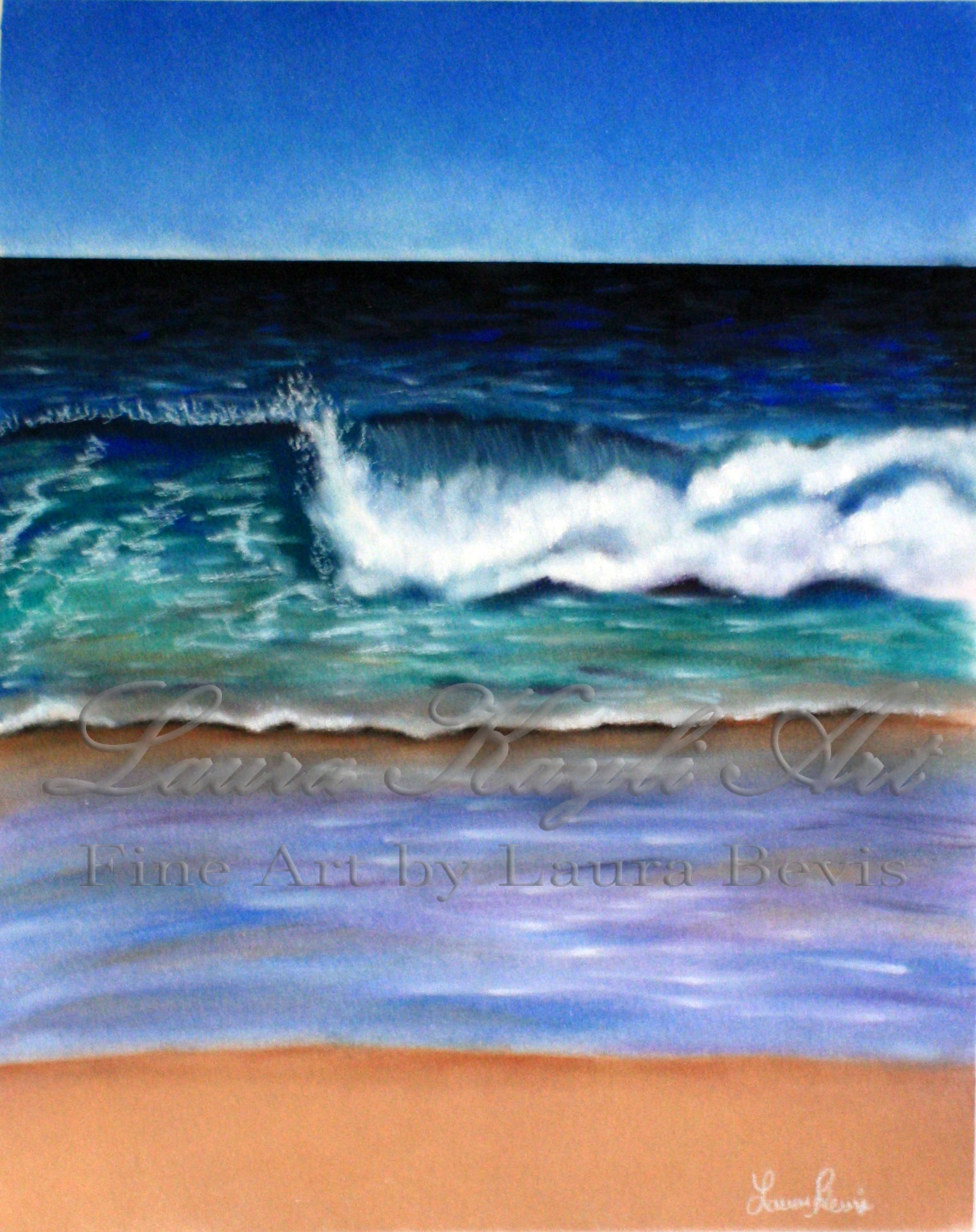 This stunning pastel painting captures the beauty and power of the ocean with its vibrant seascape and crashing wave. This original artwork will enhance any space with its breathtaking portrayal of nature. Experience the calming effects of the ocean in your own home with this beautiful piece.