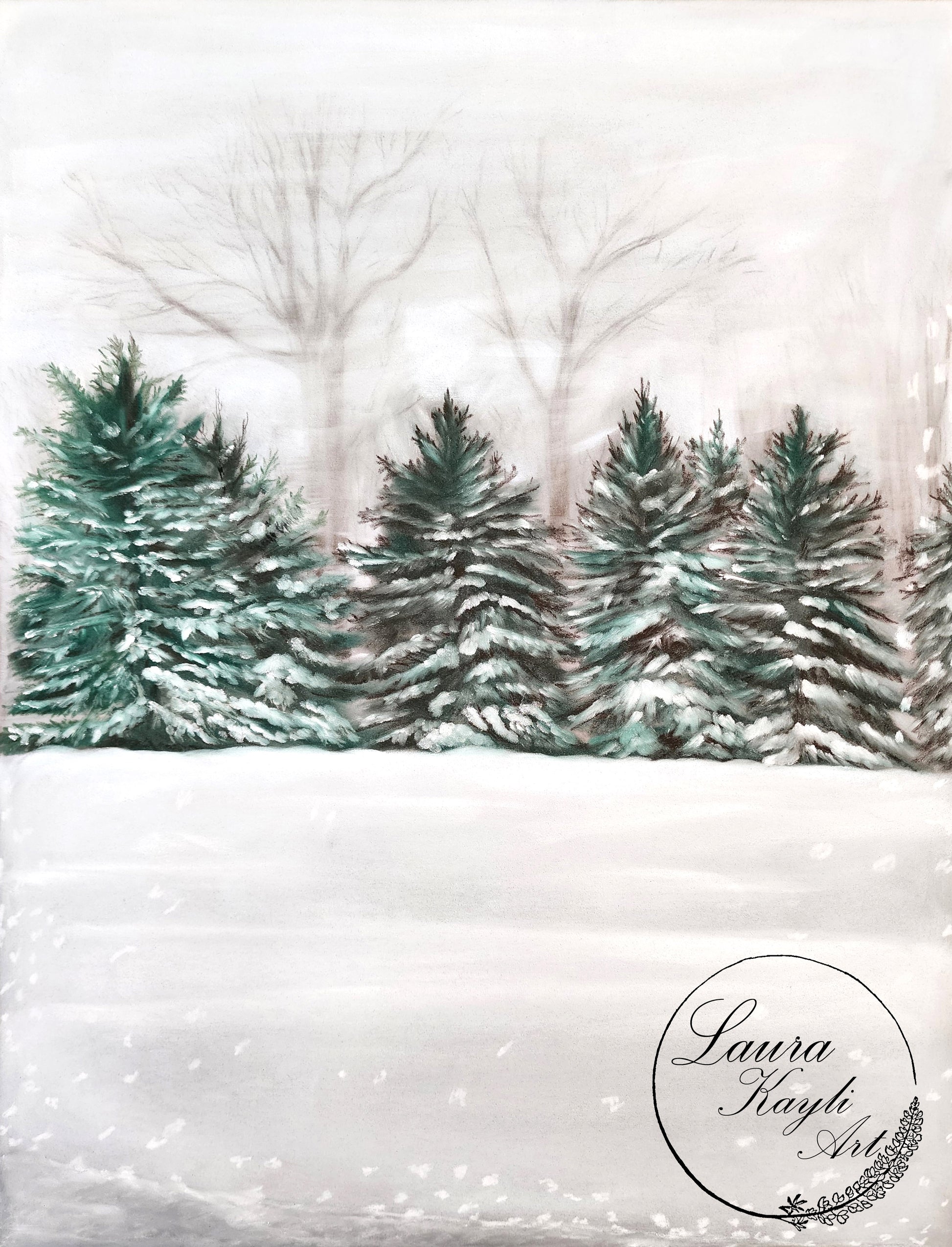 Prints are handmade and printed in my studio with my original pastel painting "Winter Wonderland."